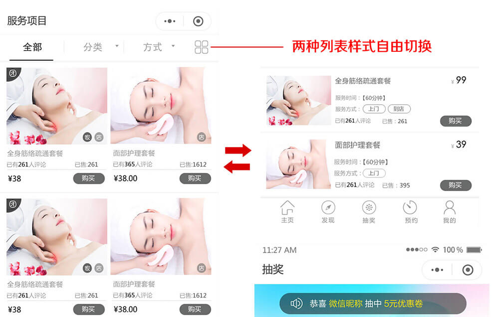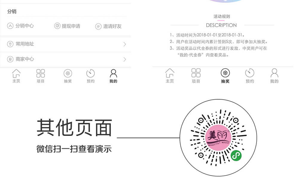 本模块可拓展到适应更多的多服务行业!!!分销、拼团、秒杀、砍价、直播购物。签到大转盘抽奖、三级分销功能(可自由切换一级二级三级)、活动文章分享、手机管理功能、买单功能、客服、多门店、技师、预约、项目、增加管理员手机端关闭指定日期预约功能.....